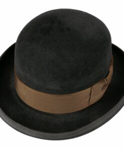 This refined bowler hat is made of 100% finest fur felt and meets the highest quality requirements of a stylish outfit. With a leather inner band, satin lining, grosgrain ribbon trim and bound edging, this occasion wear hat is exceptionally comfortable to wear.