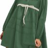 - Design: Lace is the main theme of this mini dress, which is used on the neckline, cuffs, and center, creating a dreamy atmosphere. Long puff sleeve and bow tie front designs add cute elements in this short dress, making it look more lively and sweet. Flowy pleated hem, mini length and loose fit designs lay the foundation of the babydoll dress silhouette, which are suitable for most people. Trendy tunic long sleeve lace embroidered short dress will make you stand out from the crowd