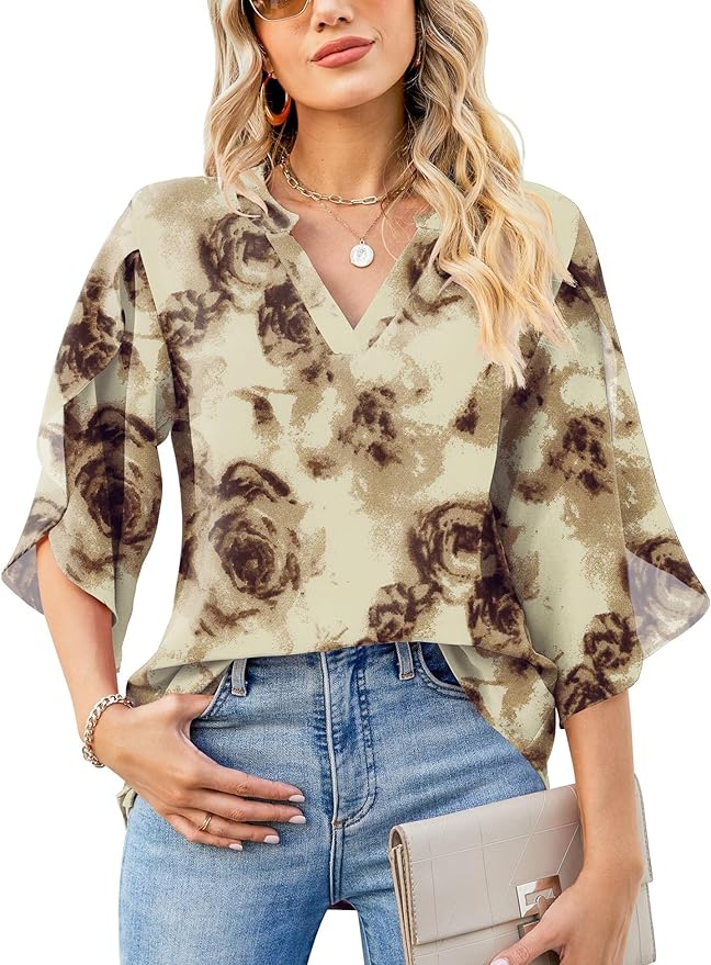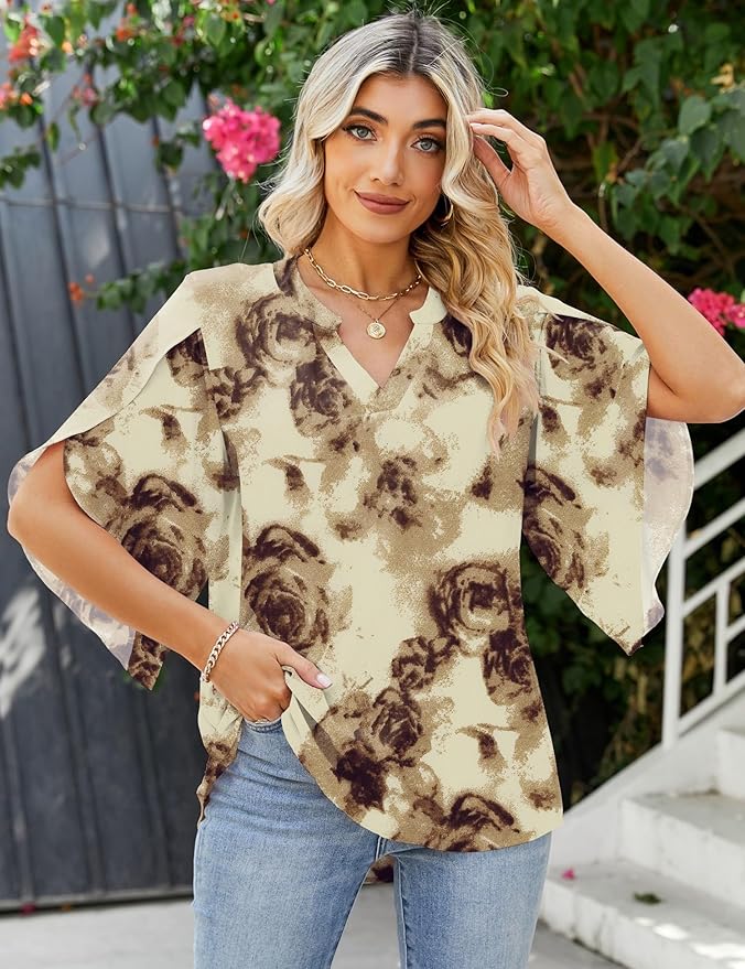 - Material: Our women’s wide-cut blouse is made of soft chiffon material, which is 100% Polyester. It’s lightweight, skin-friendly, comfortable, breathable, and not see-through, making it perfect for all-day wear.