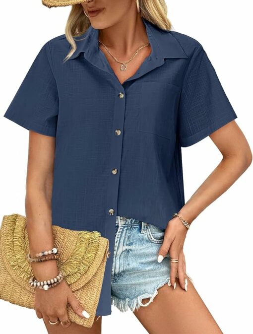 - Fabric: cotton and linen women’s blouse, bigger and stiffer before washing, softer and more fitted and not boxy after washing. Please note that white will be a bit translucent.