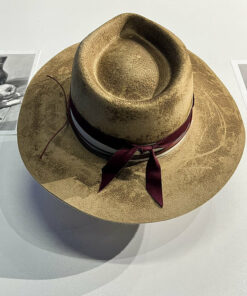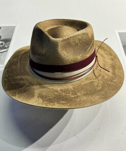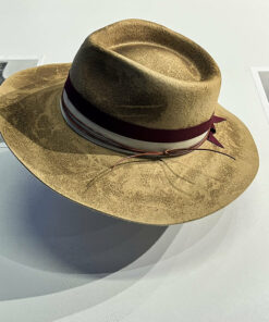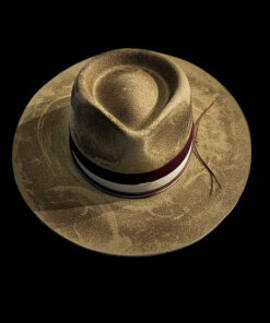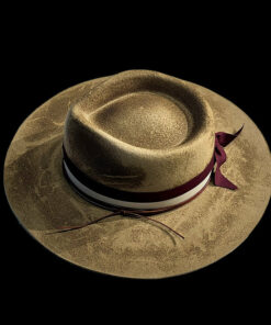 “Distressed Fedora with Red Striped Edge” is hand-distressed, hand-dyed, and hand-torched, ensuring no two share the same color or design. Each piece is uniquely imperfect, with subtle variations from product images.