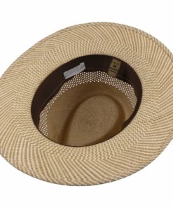 In summer, you can’t do without the airy straw hat. It is woven in Ecuador from 100% Panama straw and features a brim patterned in two natural shades. A wide air-permeable strip is incorporated into the crown to keep your head cool on hot summer days. The narrow trim band is made of leather.