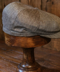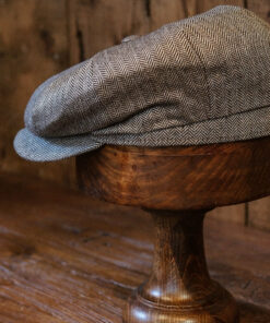 Eight Piece Grey Herringbone Linen Newsboy Cap