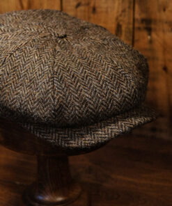 The “Eight Piece Light Brown Herringbone Wool Newsboy Cap”, a timeless accessory that exudes classic charm and sophistication. Crafted from high-quality tweed wool fabric, this cap combines durability with style, making it a versatile addition to your wardrobe.