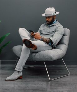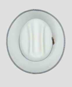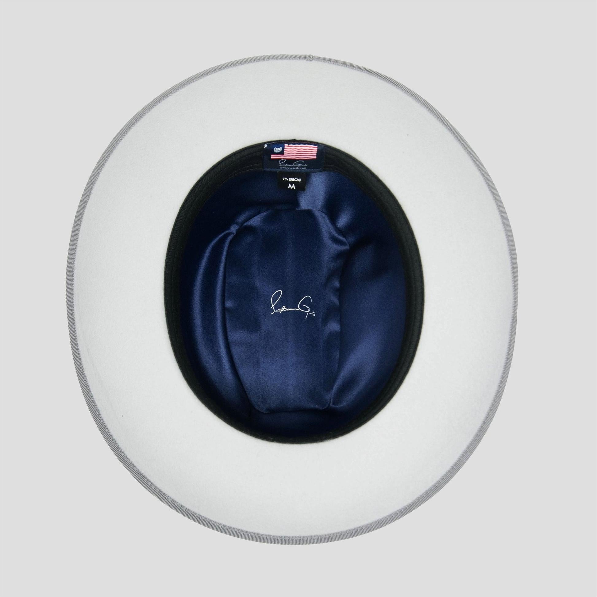 The Fedora is constructed of firm finish, fur felt and features a pinchfront crown, bound edge brim, interior cotton sweatband and grosgrain hat band with feather accent.