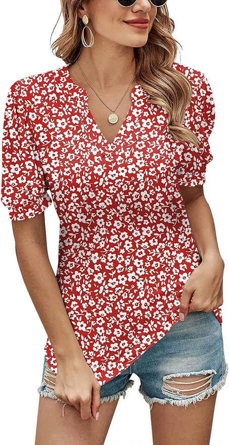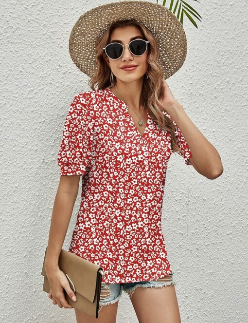 - Skin-Friendly Material — Made of soft and breathable fabric. The short-sleeve blouse is stretchy, soft and lightweight. Provide you a pleasing wearing experience.