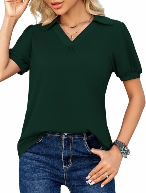 - Fabric: Our women’s puff short sleeve tops are made from a blend of 60% Polyester,35% Rayon and 5% , ensuring a , breathable, and stretchy feel that provides ultimate comfort throughout the day.
