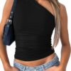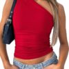 - Features: One shoulder tops for women, solid color, cropped and basic style, you can wear it regularly or fold it up like a crop top. Cute, slim fitted, casual style, asymmetrical neck, sexy cute tube top.