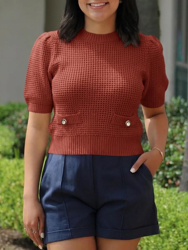 - Feature: The chic puff sleeves, crew neck and chunky ribbed knit design create a timeless silhouette that elevates your collection of womens tops, whether styled for business casual outfits for women, teacher clothes, or weekend outings