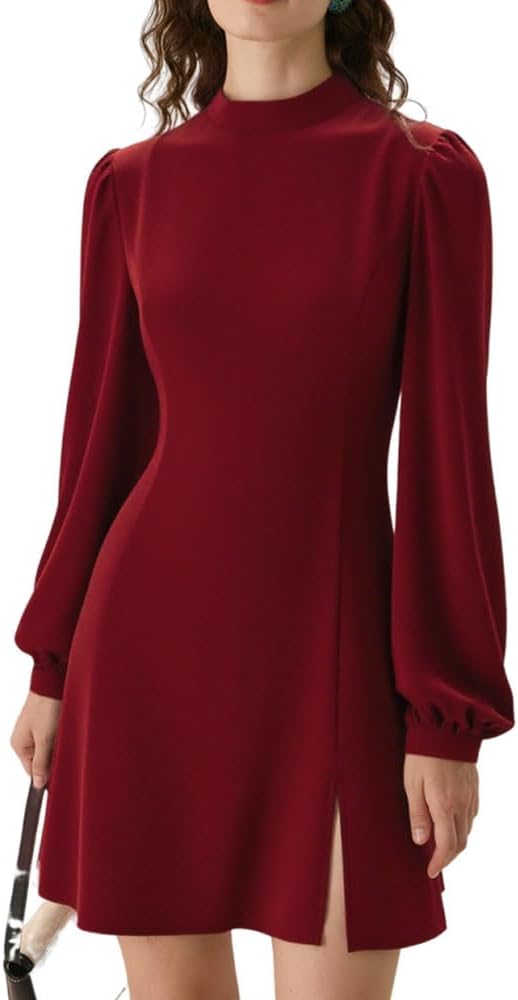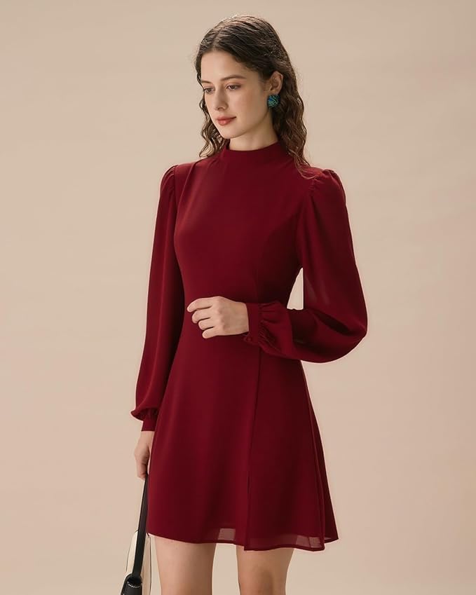 - 【Elegant Long & Sheer Sleeve Mock Neck Design】This women’s black sheer long sleeve short dress features trendy sheer puff sleeves and a chic mock neck, adding a touch of sophistication. Perfect for cocktail parties or evening events, it makes you stand out with a feminine yet stylish look.