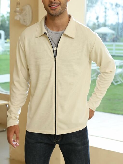 - Material -Mens zipper jackets made of 85% Polyester and 15% Spandex, Skin-Friendly, Durable, Comfortable, Soft material. It can offer warmth and protection on autumn cold days.