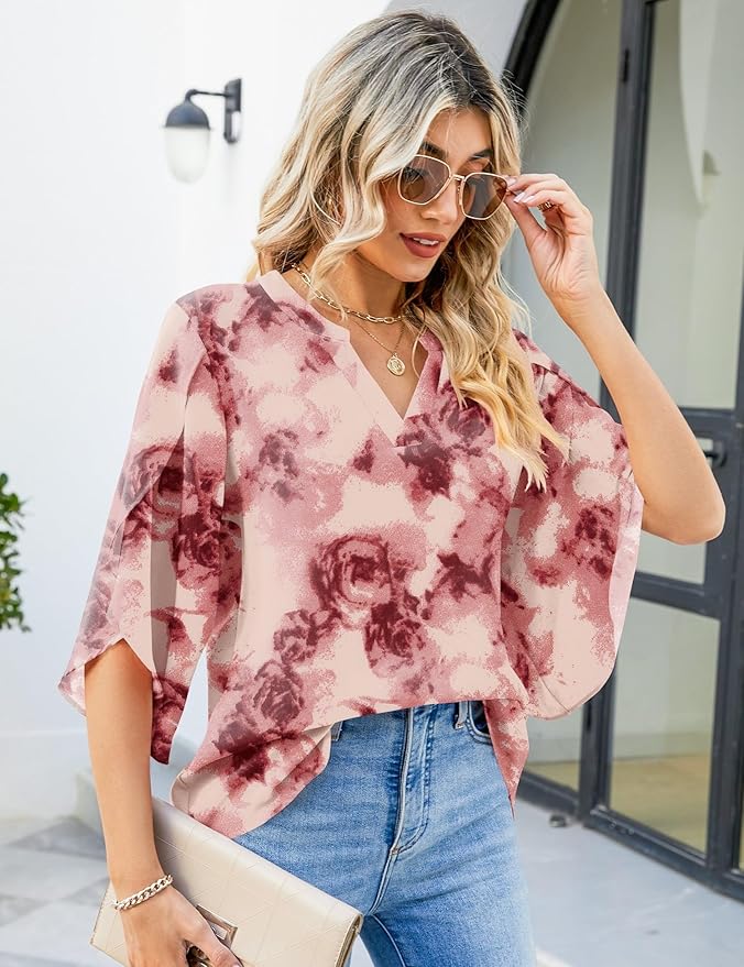 - Material: Our women’s wide-cut blouse is made of soft chiffon material, which is 100% Polyester. It’s lightweight, skin-friendly, comfortable, breathable, and not see-through, making it perfect for all-day wear.