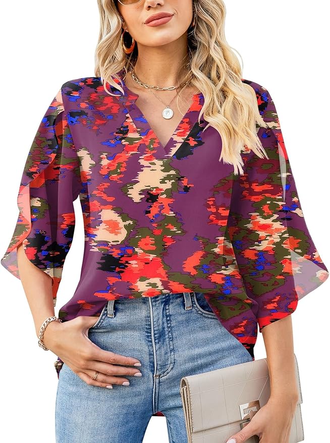 - Material: Our women’s wide-cut blouse is made of soft chiffon material, which is 100% Polyester. It’s lightweight, skin-friendly, comfortable, breathable, and not see-through, making it perfect for all-day wear.