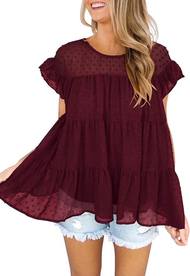 - Style: Babydoll top, peplum top, ruffle top, babydoll tops for women, flowy tops womens shirts, blouses for women, womens dress shirts are more loose fit to wear creating a casual style