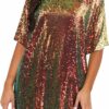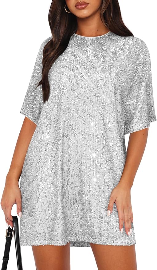 - This sequin shirt dress for women made of 92% polyester and 8% elastane fabric, soft, comfortable, lightweight, loose and fit, full lining to protect the skin, sparkle elegant.