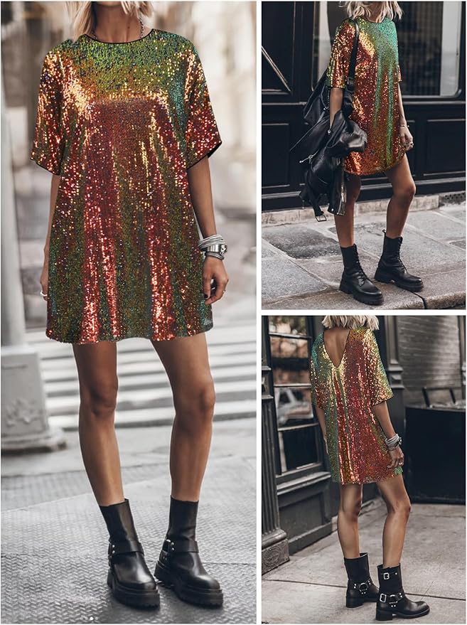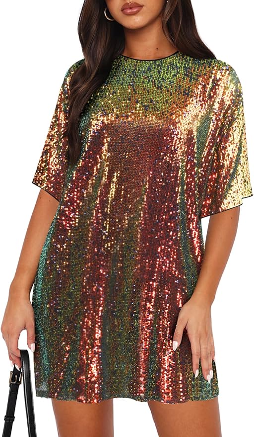 - This sequin shirt dress for women made of 92% polyester and 8% elastane fabric, soft, comfortable, lightweight, loose and fit, full lining to protect the skin, sparkle elegant.