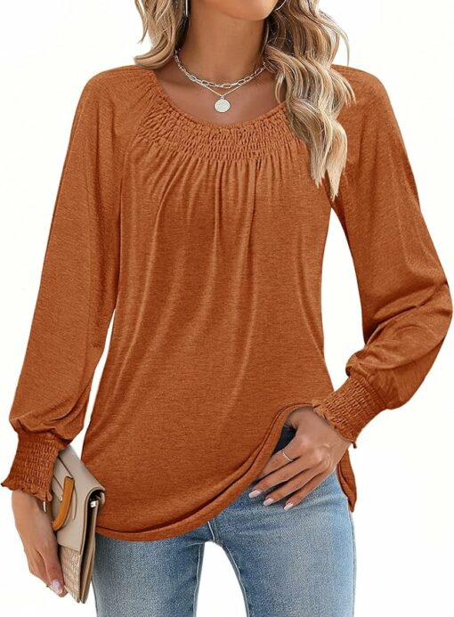 - Comfortable Material: Women’s fall tunic tops is made of super soft and stretchy fabric, not easy to shrink after washing, not pilling, breathable and lightweight, offering you all-day comfy