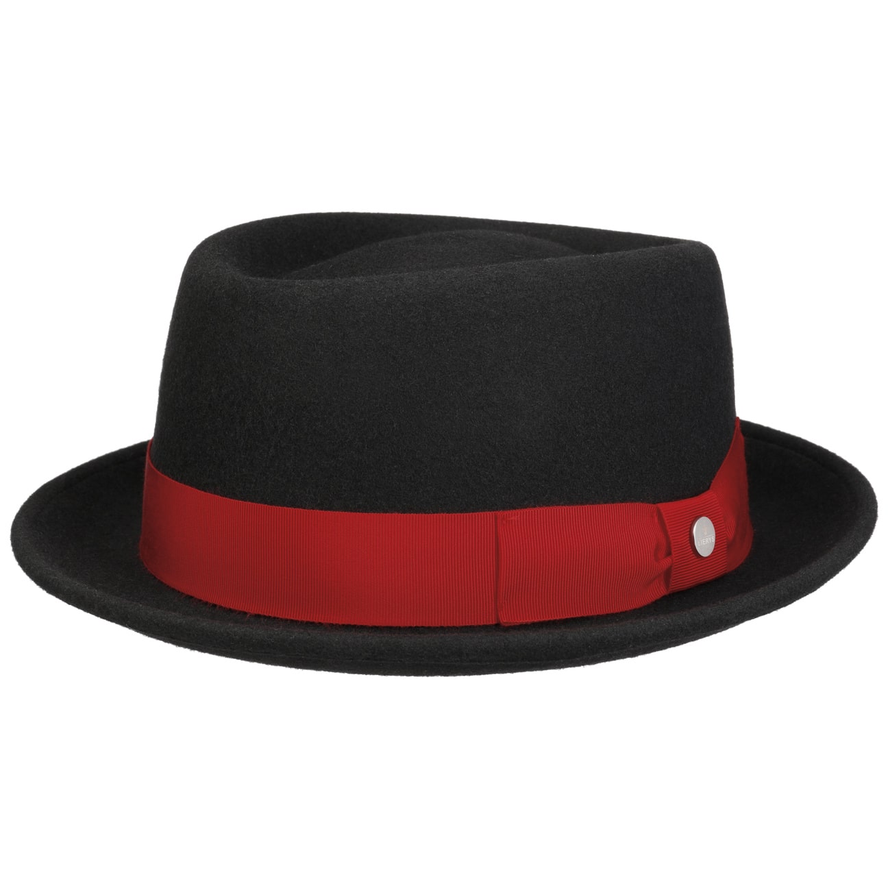 This plain-coloured felt hat reveals its elegant nature. Made of 100% wool felt, it will win you over with its practical properties as well as its attractive look: As a water-repellent and crushable outdoor hat, its great to take along to many different events. The contrast-coloured corded ribbon with bow and subtle logo emblem acts as a decorative eye-catcher.