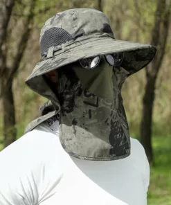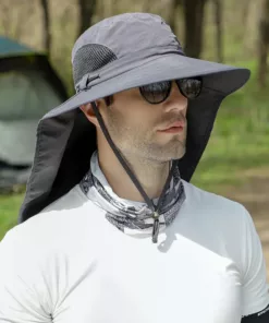Sun Hat for Men Women Wide Brim Fishing Hat with Face Cover & Neck Flap Outdoor Sun Protection Hat