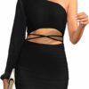 - Feature:The sexy bodycon mini dress features for one shoulder, backless, mesh puffy sleeve, waist cutout and the ropes criss cross details, tight fitted, ruched design at sides and back. The cocktail dresses short is the best choice for you