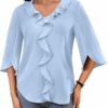 - Skin-Friendly Material — Made of soft and breathable fabric. The short-sleeve blouse is stretchy, soft and lightweight. Provide you a pleasing wearing experience.